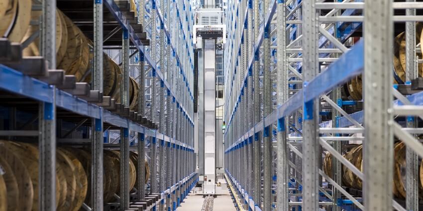 Το επόμενο βήμα στην αυτοματοποίηση του Κέντρου Διανομής, είναι η εισαγωγή ενός προηγμένου μηχανήματος Stacker Crane, αποκλειστικά σχεδιασμένου για την αποδοτική διαχείριση βαρέων στροφείων καλωδίων. Αυτός ο εξελιγμένος γερανός κινείται κατά μήκος ραγών, επιτρέποντας την άριστη αξιοποίηση του χώρου και εξασφαλίζοντας ταχύτερη πρόσβαση και μεταφορά των στροφείων προς τους αυτοματοποιημένους σταθμούς κοπής.