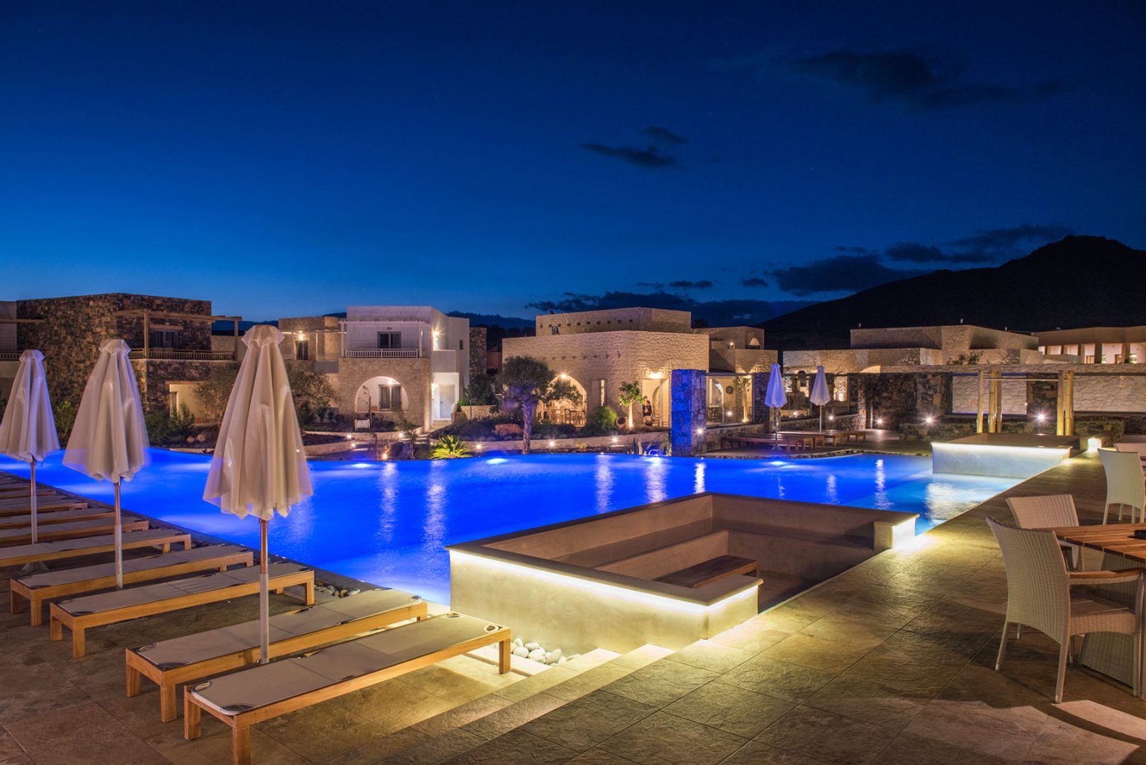 Το ξενοδοχείο Elounda Sun Waterpark προχώρησε σε ανακαίνιση συνολικά 123 δωματίων, του εστιατορίου, του bar και του hammam με εξίσου εκτενείς επεμβάσεις στους εξωτερικούς του χώρους.