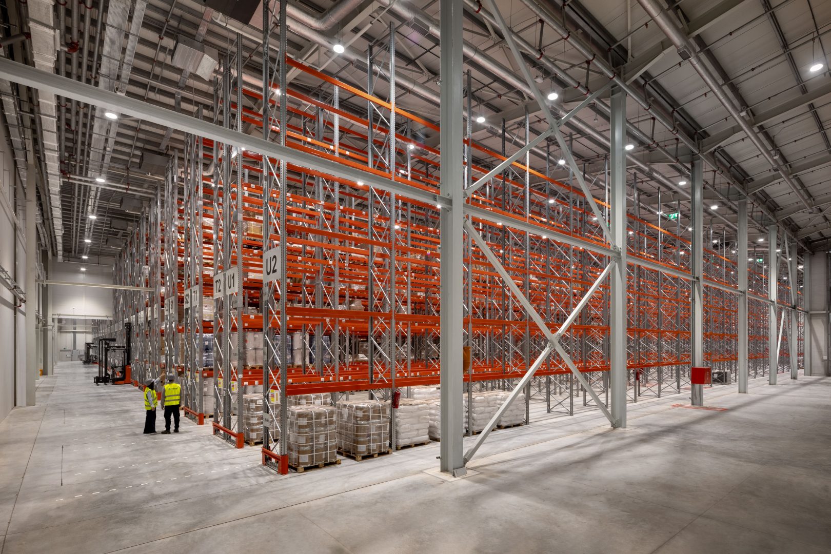 Κατά τη διάρκεια της σχεδίασης των επιμέρους λύσεων φωτισμού, βασική πρόκληση αποτέλεσε η επίτευξη ενός φωτιστικού αποτελέσματος με τα κατάλληλα επίπεδα έντασης και ομοιομορφίας ακόμα και στα πιο δύσκολα μέρη των αποθηκευτικών χώρων, όπως οι κάθετες επιφάνειες των ραφιών τύπου dexion, ύψους h>12m.
