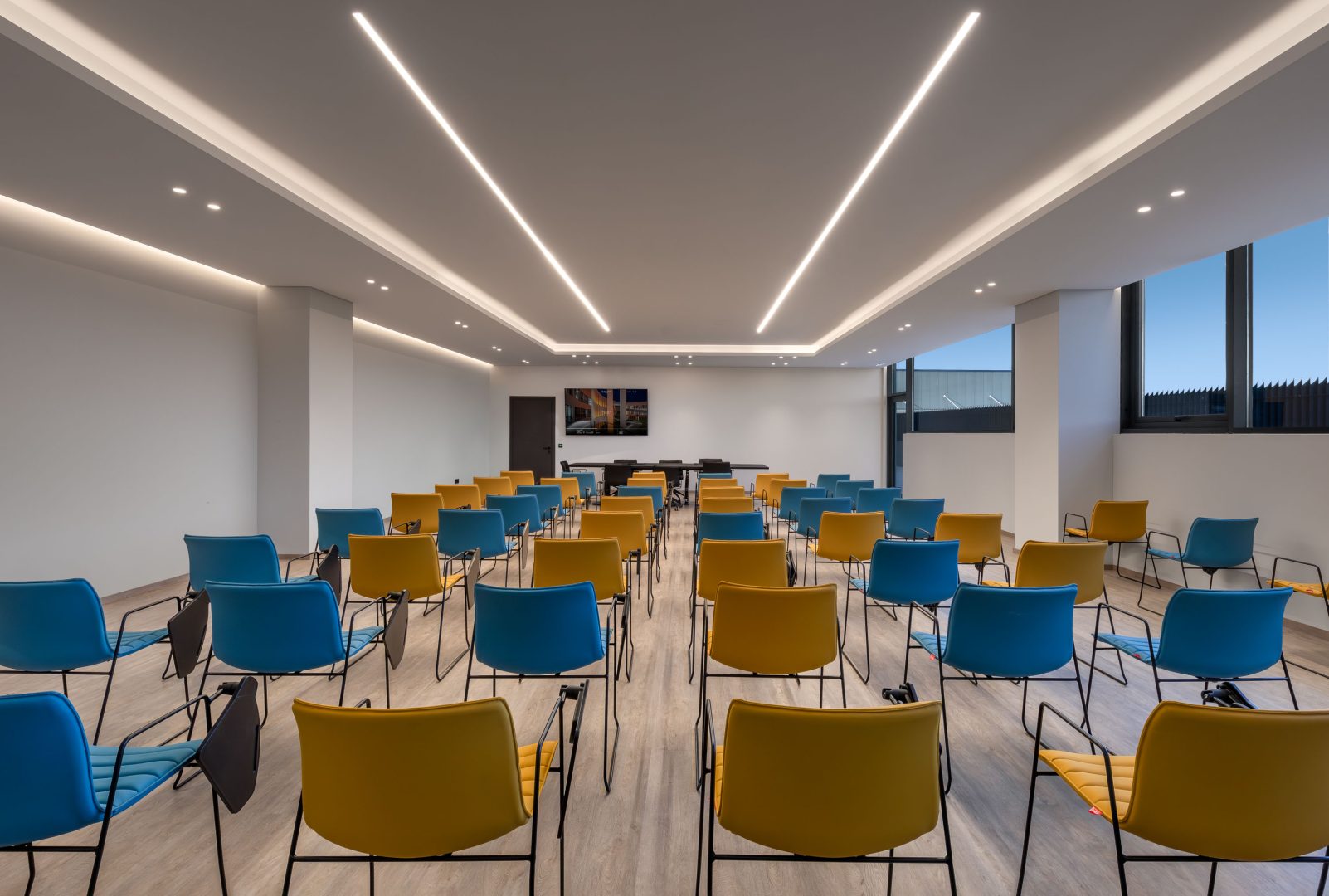 Κύρια πρόκληση για τον σχεδιασμό των γραφείων υπήρξε η εναρμόνιση του φωτισμού με τα αρχιτεκτονικά στοιχεία του χώρου, αλλά και με τις χρήσεις του. Για παράδειγμα, στους διαδρόμους χρησιμοποιήθηκαν επιμήκη φωτιστικά τονίζοντας τη γραμμικότητά τους, αλλά και το στοιχείο της κίνησης που τους χαρακτηρίζει.