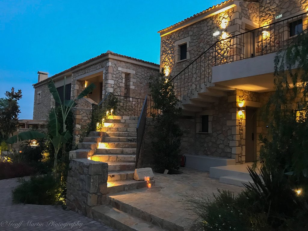 Στόχος της ομάδας μας ήταν να σχεδιάσει και να υλοποιήσει ένα ολοκληρωμένο σχέδιο φωτισμού, το οποίο θα αναδείκνυε την παραδοσιακή αρχιτεκτονική και τις πέτρινες υφές του ξενοδοχείου. Επιπλέον, τα φωτιστικά σώματα και οι διακόπτες επιλέχθηκαν βάσει τεχνικών χαρακτηριστικών και αντοχής απέναντι στις διάφορες καιρικές συνθήκες (σκόνη-υγρασία).