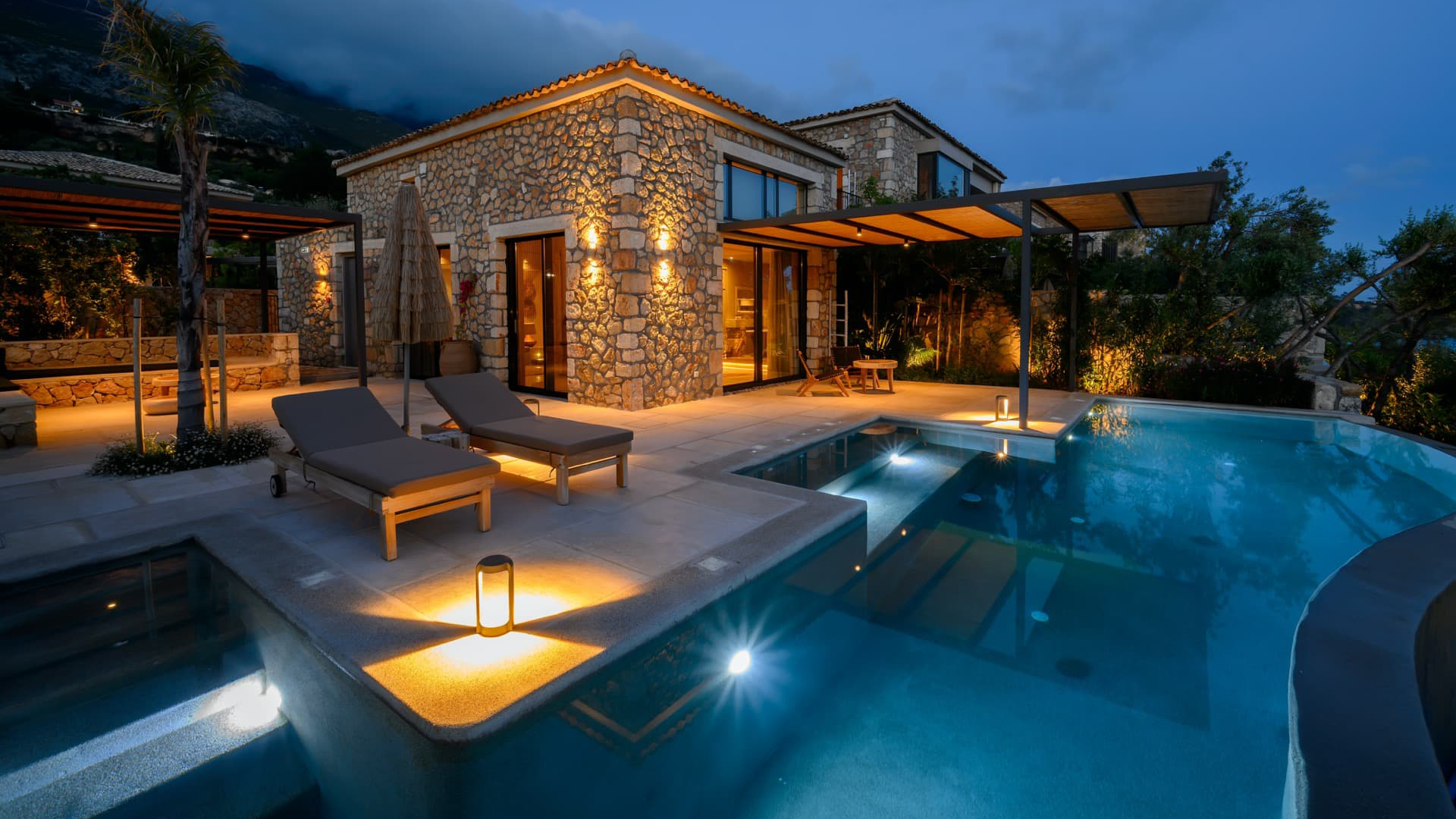 Πηγή έμπνευσης της ομάδας μας ήταν η δημιουργία ενός ήσυχου φυσικού περιβάλλοντος που μετουσιώνει το “ευ ζην”. Το όραμα των ειδικών μας ήταν να αποτυπώνεται στους επισκέπτες το αίσθημα της απλής ζωής σε απόλυτη αρμονία με τις πολυτελείς διακοπές κάθε στιγμή της ημέρας. Τέλος, με την ολοκληρωμένη πρόταση φωτισμού καταφέραμε να αναδείξουμε τον εσωτερικό και εξωτερικό χαρακτήρα του πολυτελούς καταλύματος καθώς και τις υφές της πέτρινης τεχνοτροπίας.