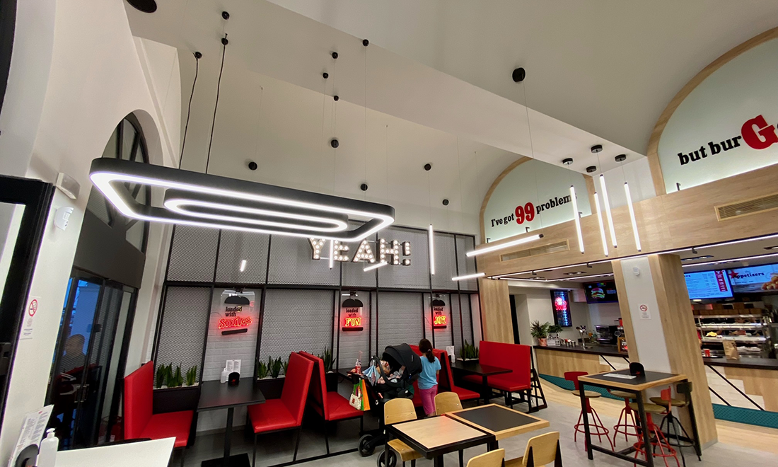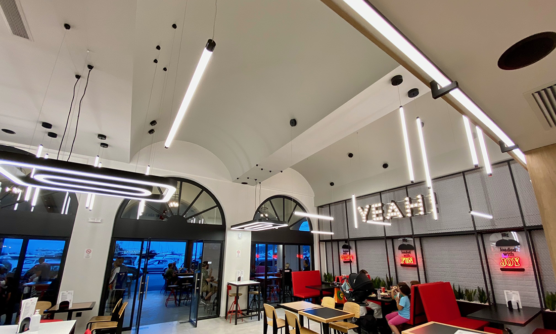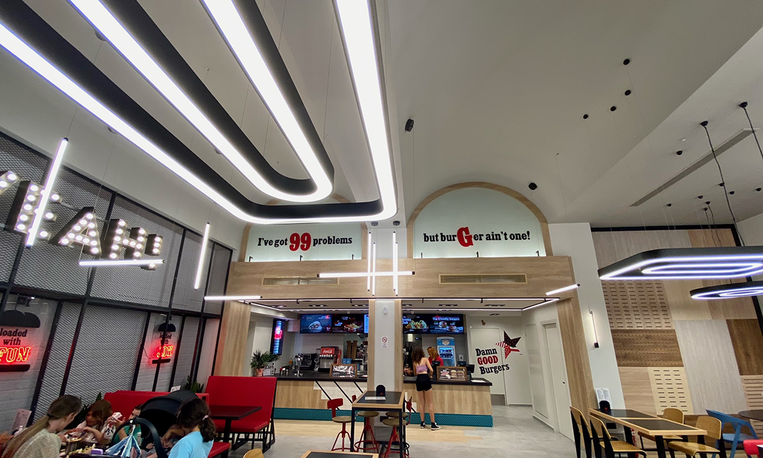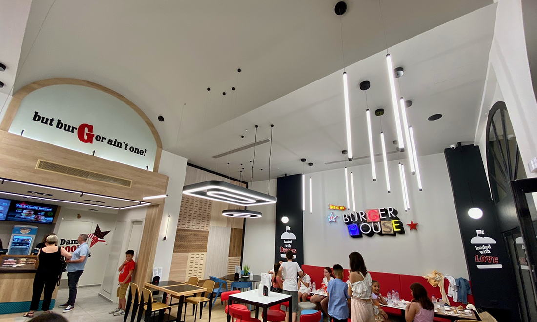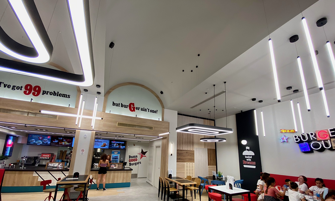 Βασική πρόκληση για την υλοποίηση του έργου ήταν η σχεδίαση και δημιουργία ειδικών κατασκευών φωτιστικών ώστε να ανταποκριθούμε στην πρόταση φωτισμού που προτείνει η εταιρεία GOODY’S για τα καταστήματα της.