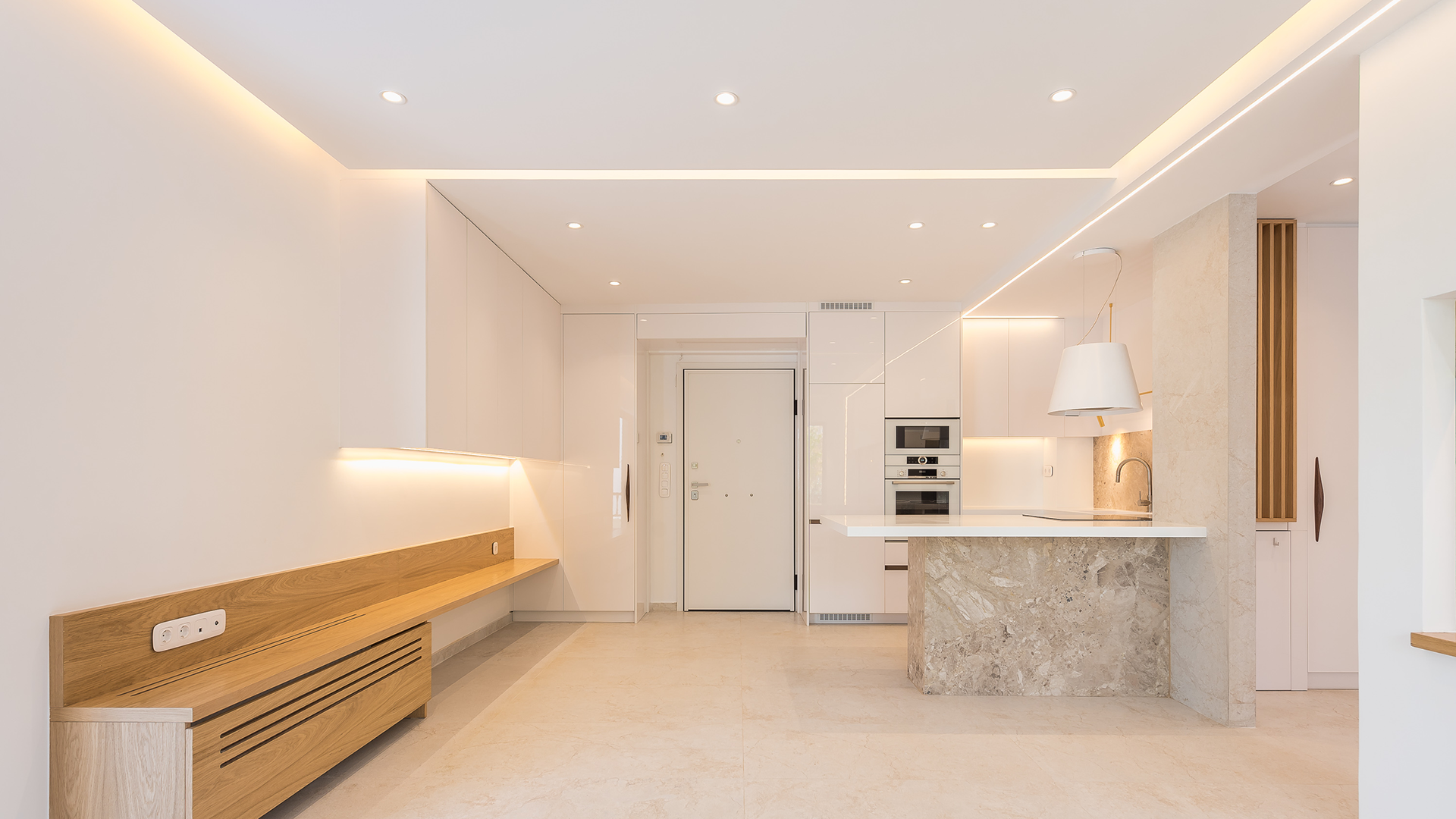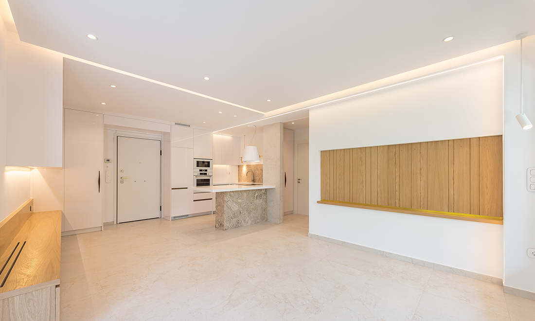 Το έργο αφορά την ανακαίνιση και αναδιαρρύθμιση μιας πολυτελούς κατοικίας στην περιοχή της Βουλιαγμένης. Έπειτα από τον αρχιτεκτονικό σχεδιασμό ήρθε η μελέτη του φωτισμού, που ήταν αναπόσπαστο κομμάτι για την ολοκληρωτική ανανέωση της κατοικίας. Χρησιμοποιήθηκαν φωτιστικά, σποτ και ταινίες Led σε εντάσεις και χρωματισμούς που αποπνέουν ένα αίσθημα πολυτέλειας και αποδίδουν με σαφήνεια τα στοιχεία που χαρακτηρίζουν την Αθηναϊκή Ριβιέρα. Για την ολοκλήρωση του έργου εγκαταστάθηκε μοντέρνο και σύγχρονο διακοπτικό υλικό.