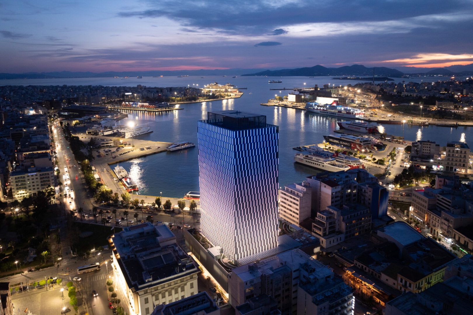 Ο Πύργος Πειραιά, με 22 ορόφους και συνολικό ύψος 88 μέτρων, αναδεικνύεται σε ένα εμβληματικό τοπόσημο της Αθηναϊκής Ριβιέρας, ενώ παράλληλα αποτελεί σύμβολο περιβαλλοντικής ευθύνης και προόδου. Η ομάδα της ΚΑΥΚΑΣ συνέβαλλε στο έργο παρέχοντας πίνακες χαμηλής τάσης, υλικά δομημένης καλωδίωσης, ενδοδαπέδιες κεφαλές, ηλεκτρολογικό εξοπλισμό, καθώς και φορτιστές ηλεκτρικών αυτοκινήτων, συμβάλλοντας σημαντικά στη λειτουργικότητα και την τεχνολογική αρτιότητα του Πύργου.