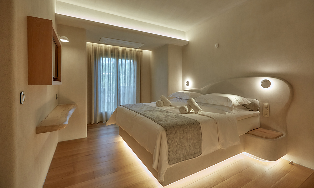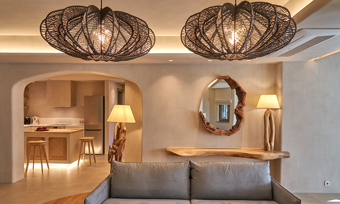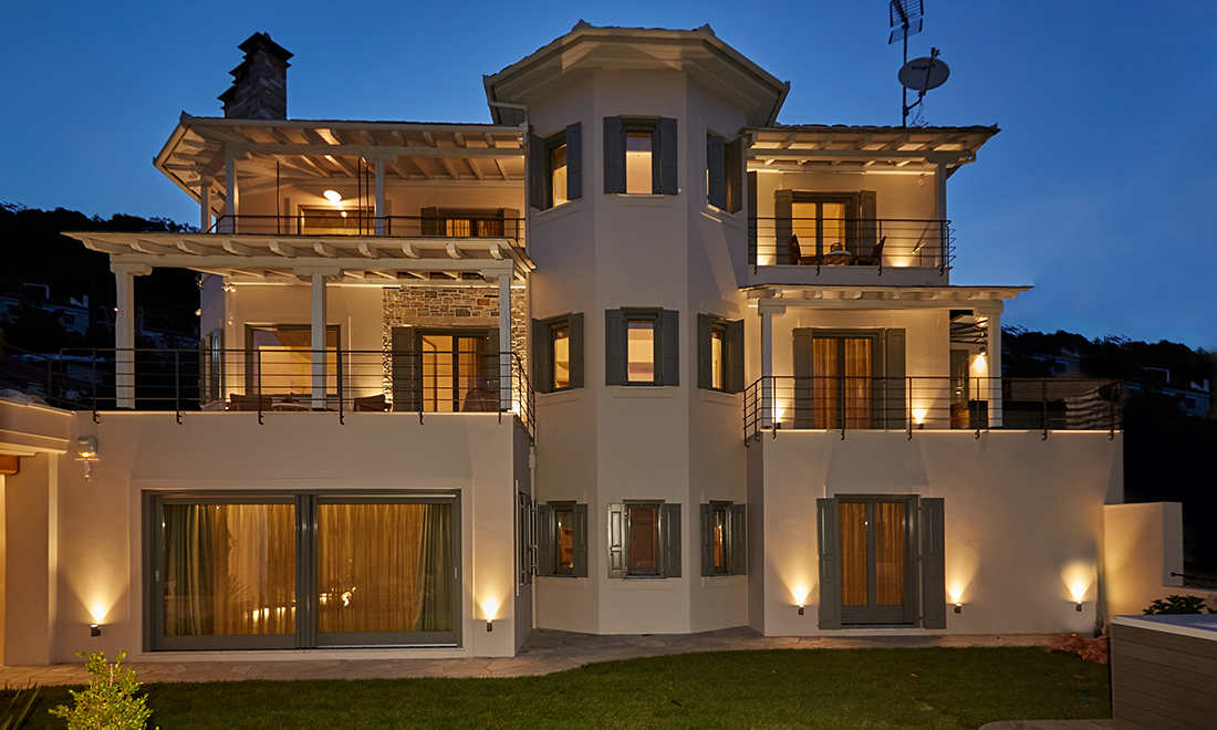 Κυρίαρχα δομικά στοιχεία αποτέλεσαν η πέτρα, το ξύλο και το σίδερο. Όραμα μας ήταν η υλοποίηση ενός σχεδίου φωτισμού το οποίο θα συμφιλίωνε τον εξωτερικό και εσωτερικό χαρακτήρα του Sunrise Garden Hills με το φυσικό περιβάλλον και το Πηλιορείτικο στυλ. Τέλος, πηγή έμπνευσης για το φωτισμό των εγκαταστάσεων αποτέλεσε η ειδυλλιακή τοποθεσία τους, η οποία συνδυάζει τη μαγεία του βουνού με αυτή της θάλασσας.