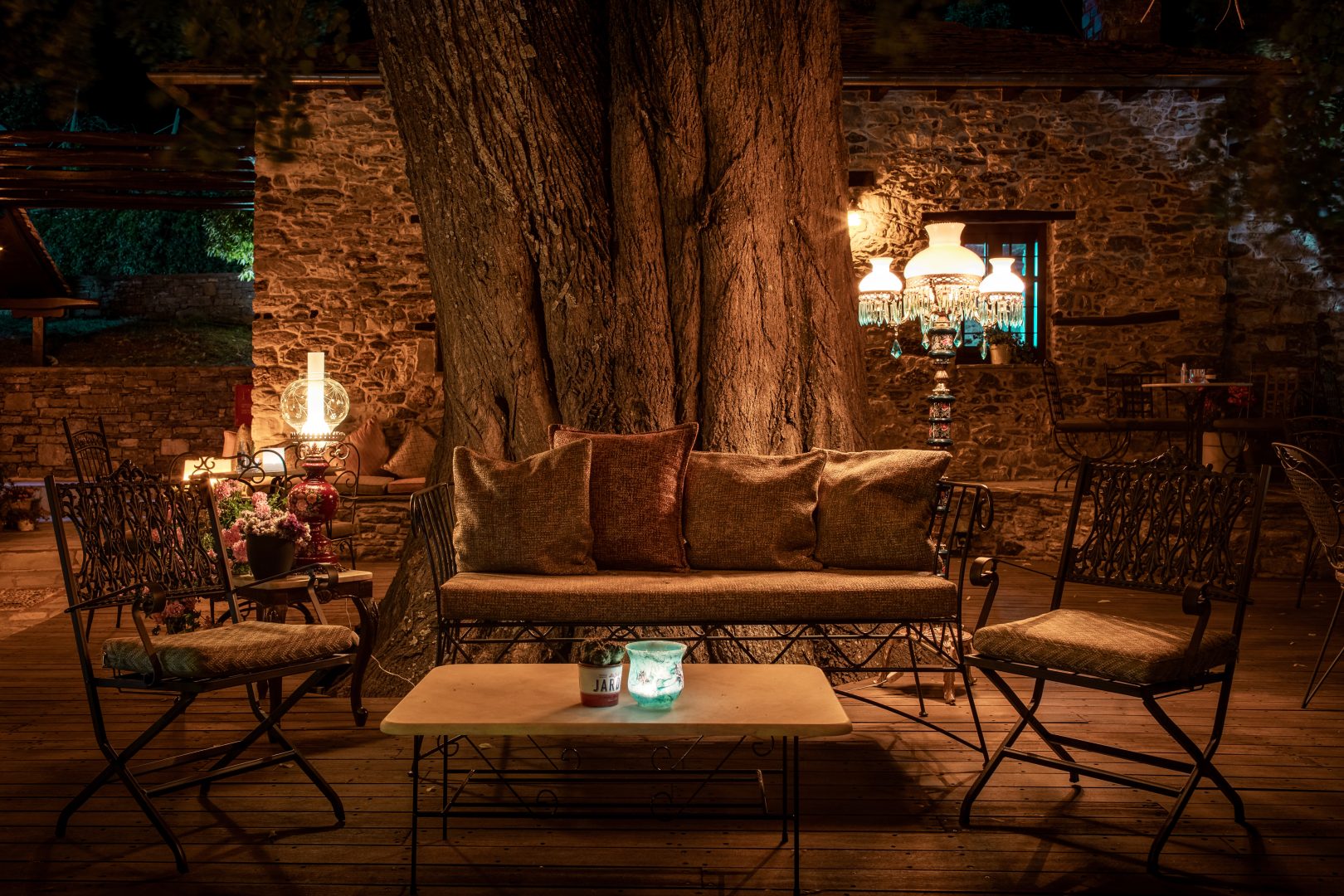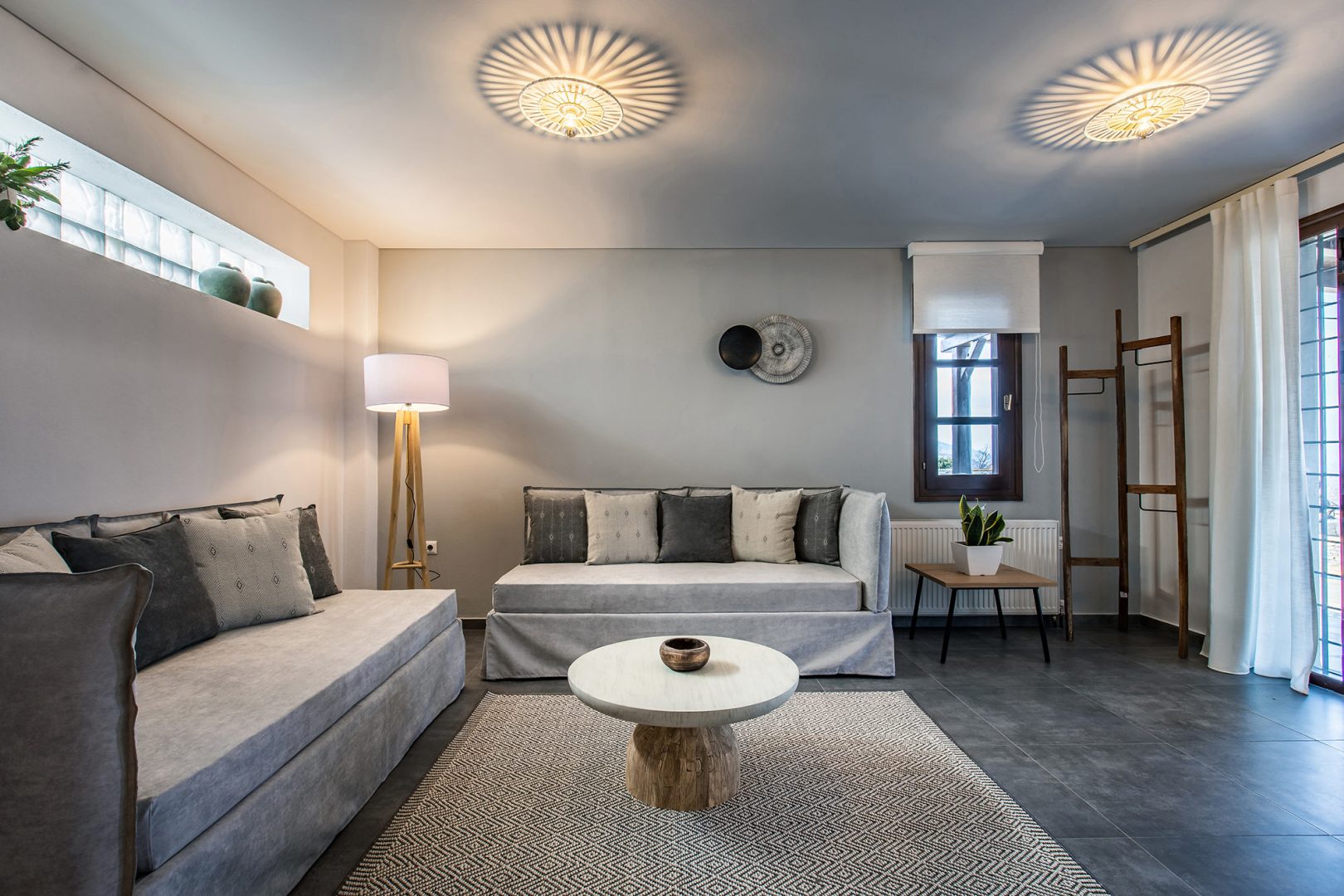 Βασική πρόκληση για την ομάδα της ΚΑΥΚΑΣ σε συνεργασία με την διακοσμήτρια του καταλύματος ήταν η εναρμόνιση των φωτιστικών σωμάτων (εσωτερικών και εξωτερικών χώρων) και του διακοπτικού υλικού με την παραδοσιακή αρχιτεκτονική των κτιρίων, καθώς και η επιλογή τους ώστε να είναι ανθεκτικά στις δύσκολες κλιματολογικές συνθήκες.