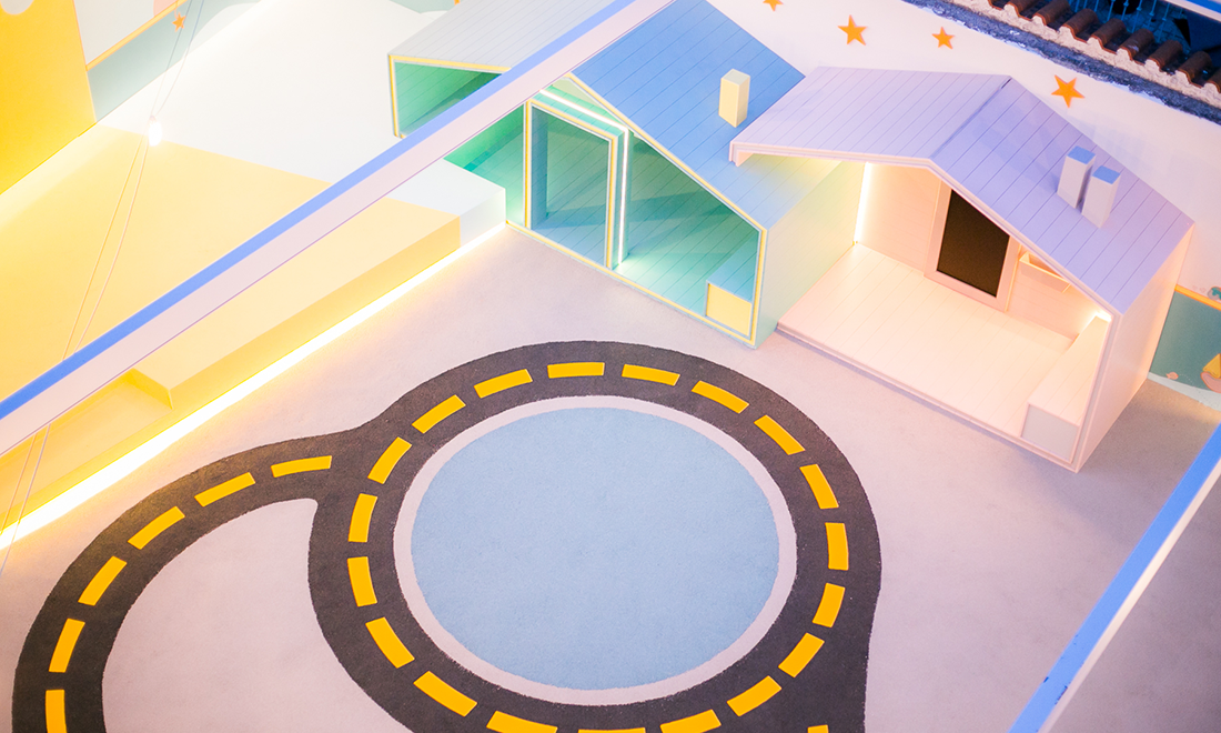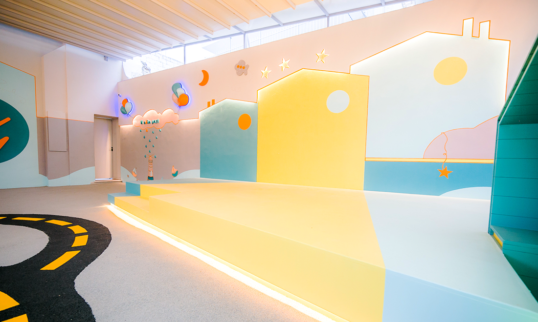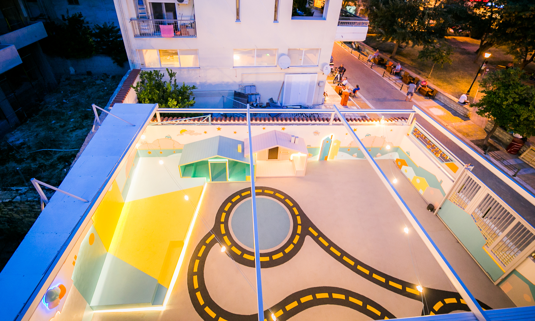 Κατά την ανακαίνιση του προαυλίου 130 τ.μ., δημιουργήθηκε ένας ημιυπαίθριος χώρος με ελαστομερές δάπεδο κατάλληλο για αθλοπαιδιές, για παιχνίδι αλλά και για σχολικές εκδηλώσεις, στην καρδιά της πόλης του Βόλου, ανάμεσα σε πολυκατοικίες και άλλα κτίρια.