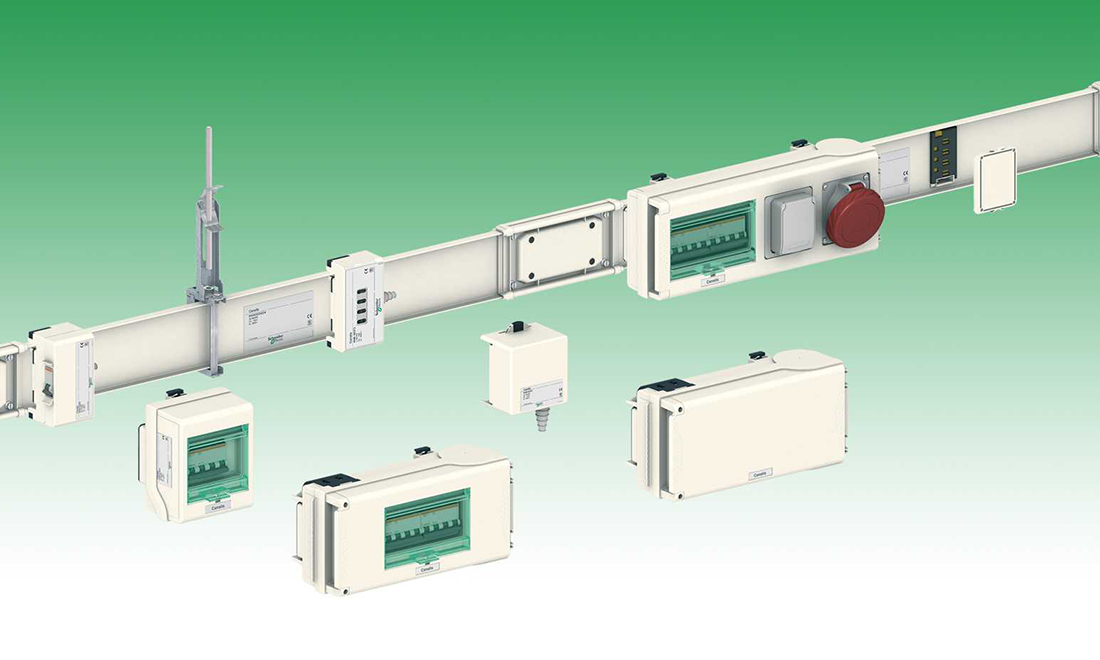 H Schneider Electric με τα busbar trunking system (BTS) τύπου CANALIS καλύπτει όλες τις ανάγκες από 63A έως 6300A με βαθμό προστασίας IP55.