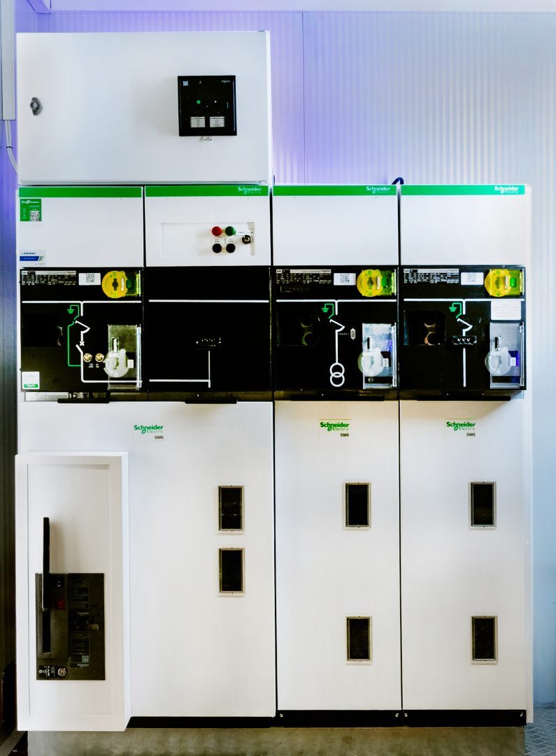 Διαθέτει επίσης συσκευές ελέγχου, παρακολούθησης και προστασίας οι οποίες παρέχουν προστασία στις εγκαταστάσεις, αδιάλειπτη λειτουργία στην παροχή ηλεκτρικού ρεύματος και περιορίζουν το χρόνο διακοπής.